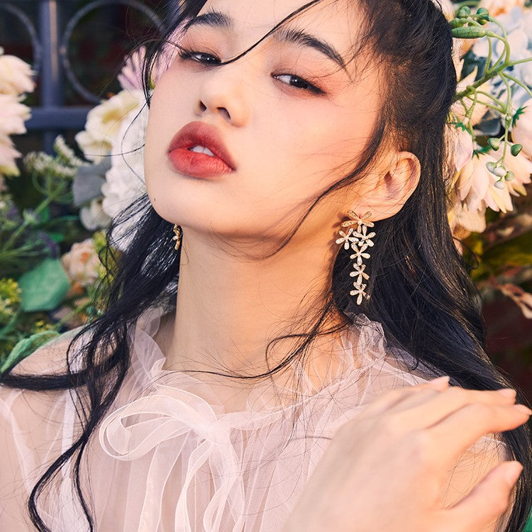 Spliced Zircon Flower Pearl Earrings