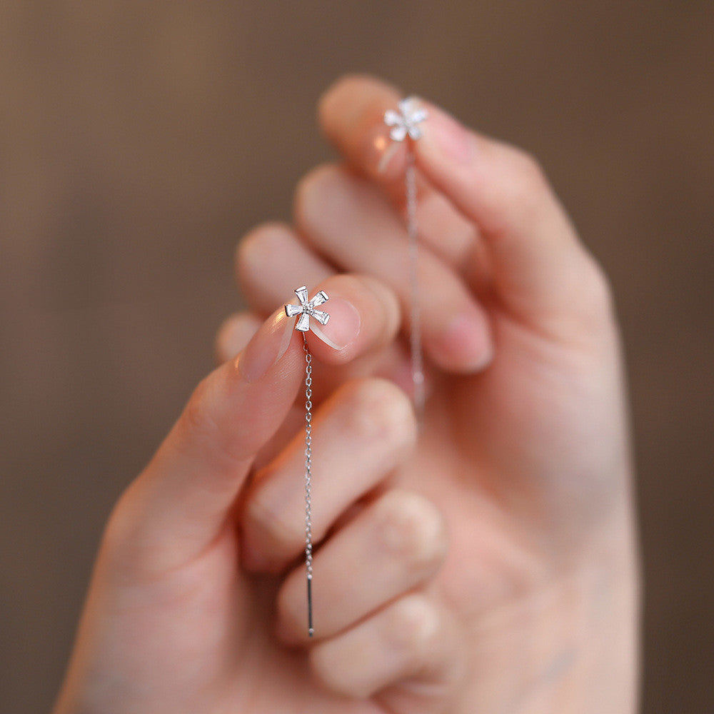 Graceful And Fashionable Sterling Silver Zircon Flower Earrings